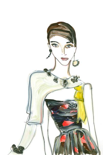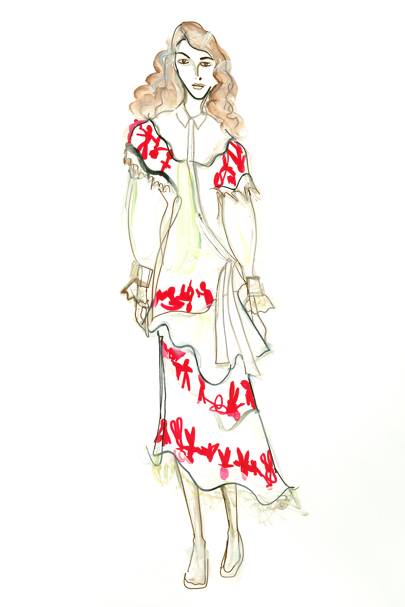 You're never too old to play with porcelain: a raspberry chain of embroidered dolls on white cotton at Simone Rocha, inspired by her collection of childhood toys, is the new-season update on florals. If that feels a little girly, try chintzy feet: Mulberry's sleek ankle boots come with a bone china heel fit for a country house dresser.Fresh Face: Fran Summers
