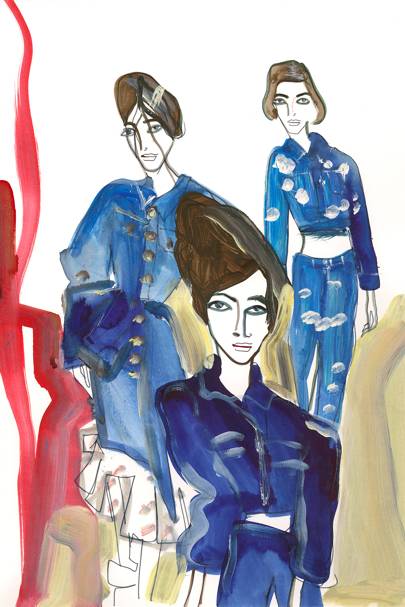 Cleaning is the new Pilates, according to the London catwalks. Christopher Kane is enjoying a love affair with Domestos, thanks to the arrival of a new puppy, and filled his spring collection with mop-head tasselled shoes and Pledge yellow duster dresses; J.W. Anderson was doing the dishes in Irish linen tea-towel tops and trousers; and Toogood was into J-cloth squiggles, repurposed as body-swathing shirts. Fast-forward the detox: come January, a spring clean theme should characterise your wardrobe.Triple denim